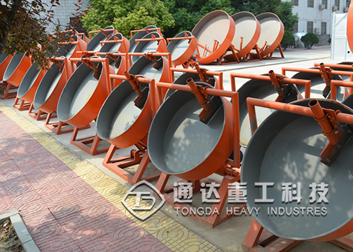 生料粉通過(guò)預(yù)加水?dāng)嚢杈鶆颍斎氡P(pán)內(nèi),隨著盤(pán)的轉(zhuǎn)動(dòng),料在盤(pán)體內(nèi)通過(guò)滾動(dòng)逐步形成球狀,達(dá)到預(yù)定的直徑后排出盤(pán)外,再輸送到下一道工序。