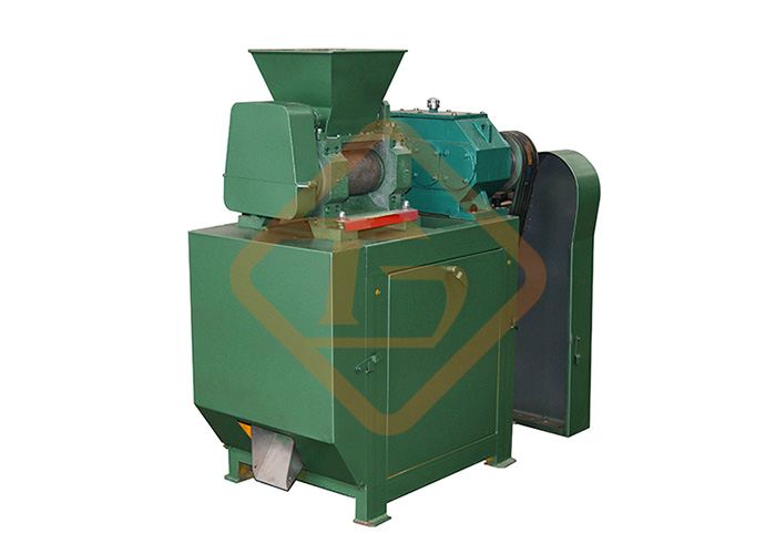 工作原理是:由電動機驅動皮帶和皮帶輪,通過減速機傳遞給主動軸,并通過對開式齒輪與被動軸同步,相向工作。物料從進料斗加入,經(jīng)對輥擠壓成型,脫模造球,并經(jīng)過一副鏈條,傳送到破碎篩工作室,篩下和分離成品顆(球)粒,然后返回料與新料混合,再進行造粒。隨著電動機連續(xù)轉動,物料的不斷進入,方能實現(xiàn)批量生產(chǎn)。